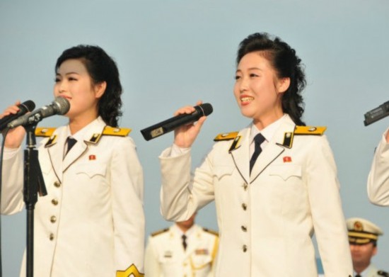 图为朝鲜文工团女兵集体献唱。