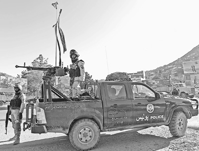 11月19日,阿富汗喀布尔,阿富汗警察执勤,确保即将开幕的大国民会议安全。 |