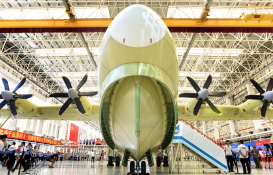 2016年7月23日,大型灭火/水上救援水陆两栖飞机AG600在广东珠海总装下线。(新华社记者 卢汉欣摄)