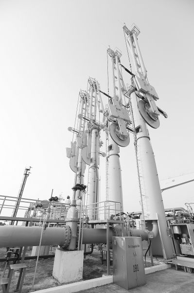 图为矗立于马德岛原油码头的四支巨型卸油臂。李司坤摄/光明图片