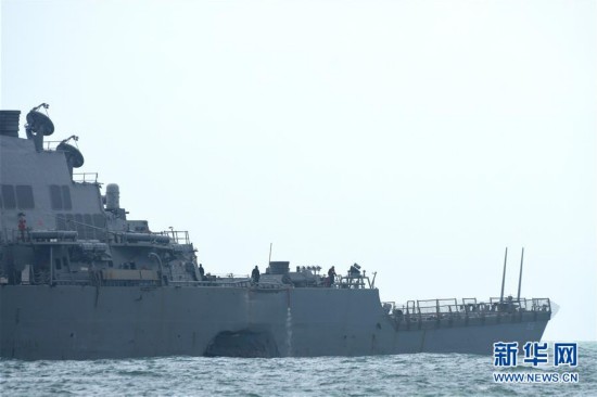 当日,美国海军“约翰·S·麦凯恩”号导弹驱逐舰在新加坡东部海域与一艘商船相撞,事故造成10名船员失踪、5人受伤。