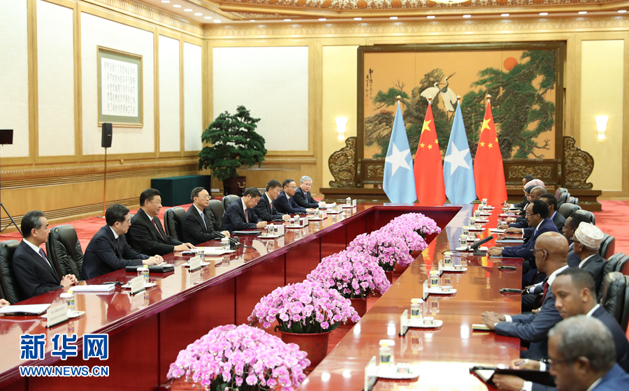 8月31日,国家主席习近平在北京人民大会堂会见索马里总统穆罕默德。 新华社记者 丁林 摄