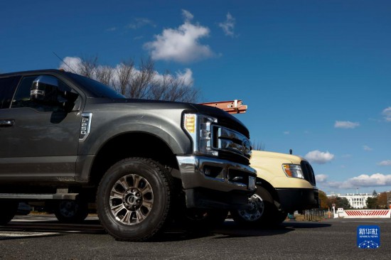 11月23日,在美国首都华盛顿,一辆货车从白宫附近驶过。美国白宫当日宣布,美国能源部将从战略石油储备中释放5000万桶原油,以缓解经济从新冠疫情中复苏时出现的石油供需不匹配问题并降低油价。新华社发(沈霆摄)