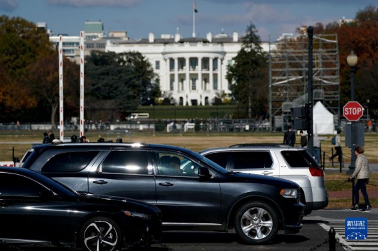 11月23日,在美国首都华盛顿,车辆从白宫附近驶过。新华社发(沈霆摄)