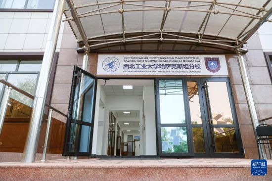 这是6月26日在哈萨克斯坦阿拉木图拍摄的西北工业大学哈萨克斯坦分校入口处。新华社记者 白雪骐 摄