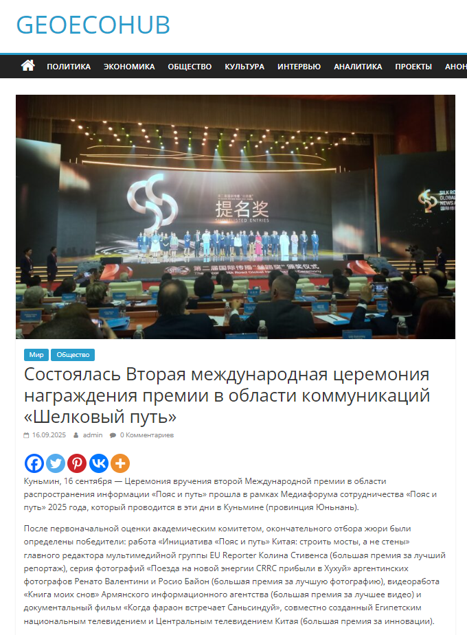 格鲁吉亚经济中心网报道第二届国际传播“丝路奖”颁奖仪式