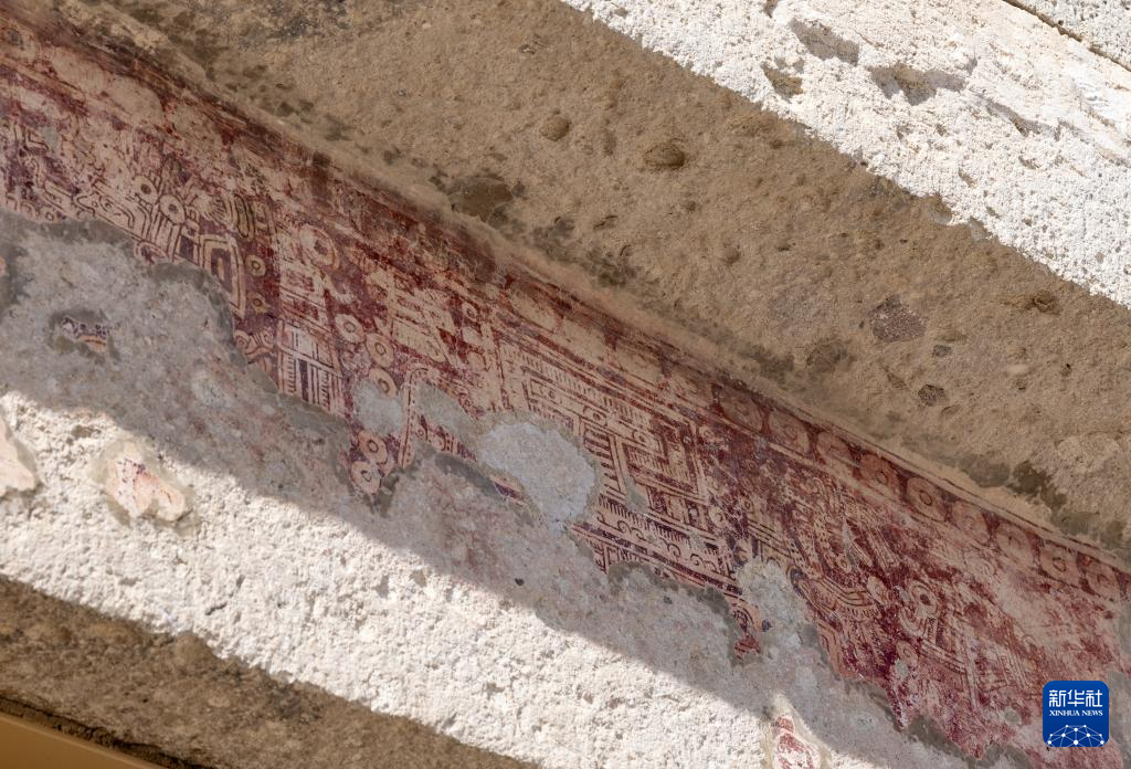 这是9月17日在墨西哥瓦哈卡州米特拉遗址拍摄的残存的壁画。