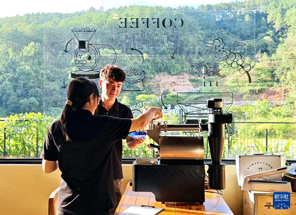 9月20日,普洱市思茅区南屏镇南岛河村白沙坡小组的“美丽星村·有风咖谷”工作人员在烘焙咖啡豆。