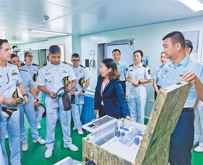 访问期间,“丝路方舟”号医院船面向当地民众和华侨华人开放,巴西海军卫生部门代表登船参观交流。医院船派出医疗专家分队先后赴马尔西奥利·迪亚斯巴海军医院、巴西海军作战医学中心开展专业研讨,分享临床诊疗、应急救援经验,并为巴西海军官兵开展战伤救援实操演示。“这些交流活动让我们收获颇丰。希望未来巴中两国海军在医疗领域的合作不断深化、取得更多成果。”巴西海军上校埃梅森表示。