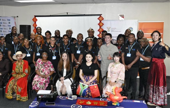 “2026中非人文交流年”定制化“中文+南非导游”培训圆满结束 近日,在南非行政首都比勒陀利亚,由南非旅游部主办、上海杉达学院南非中国文化和国际教育交流中心孔子课堂(以下简称“中国文化中心孔子课堂”)承办的第八期定制化“中文+南非导游”培训暨“中非人文交流年”活动圆满结束。