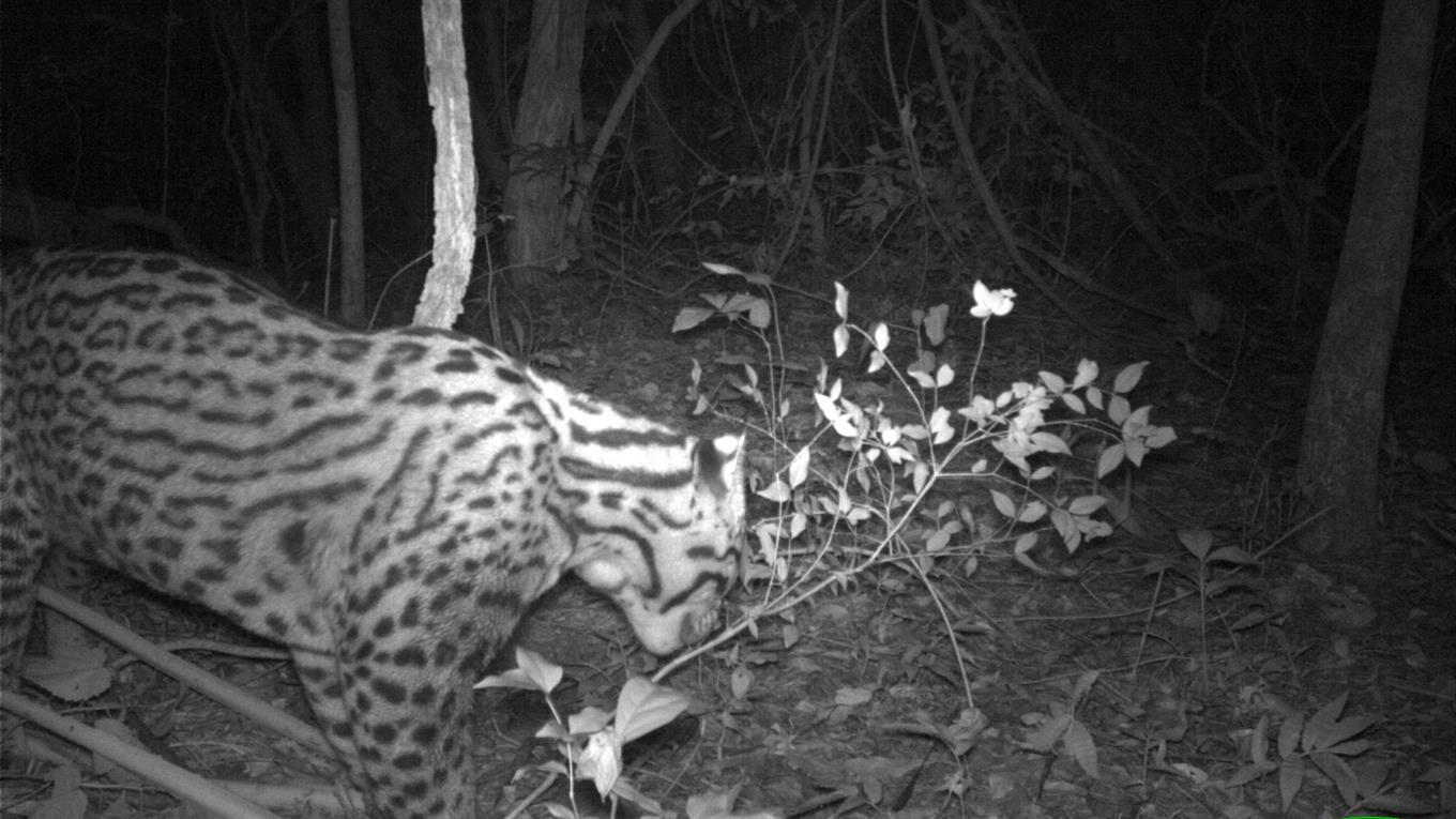 豹猫的斑点很大,文字记载中,它最后一次出现在10年前,在附近的山区高地。此后,科学家一直美誉找到其踪迹。这次科学家安装的照相机,是用来检测食蚁兽的,不经心间抓拍了5张豹猫的影像。