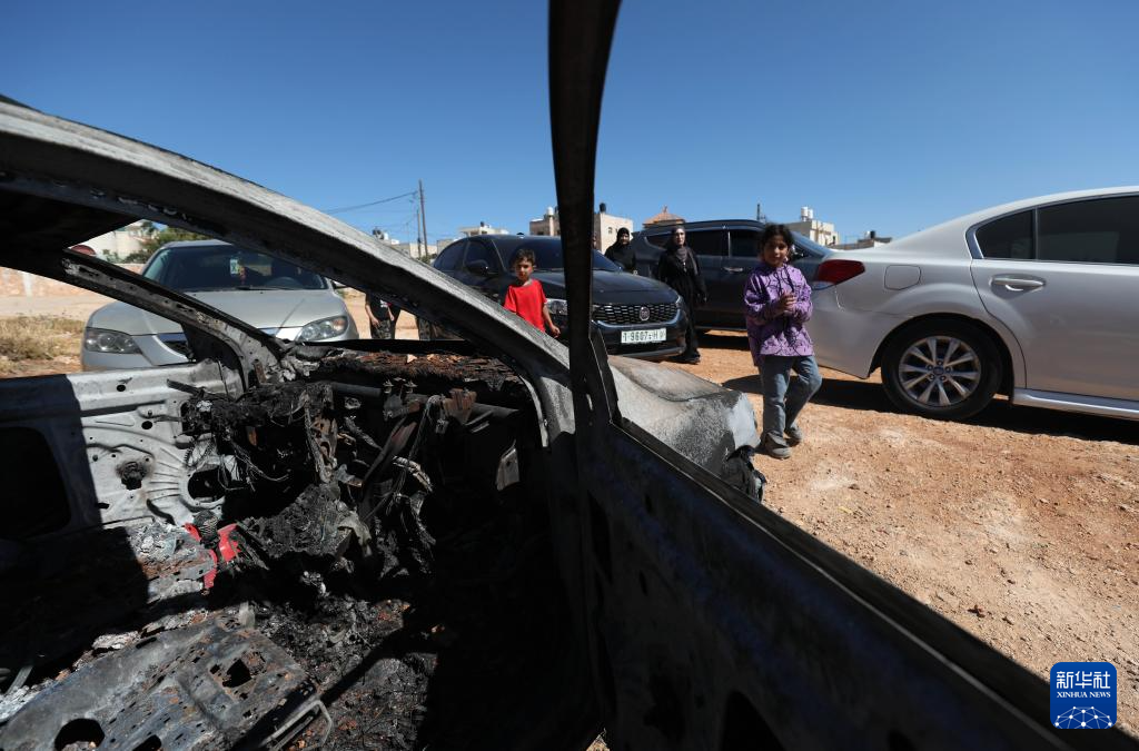 这是6月26日在约旦河西岸拉姆安拉以东的马利克村拍摄的损毁汽车。