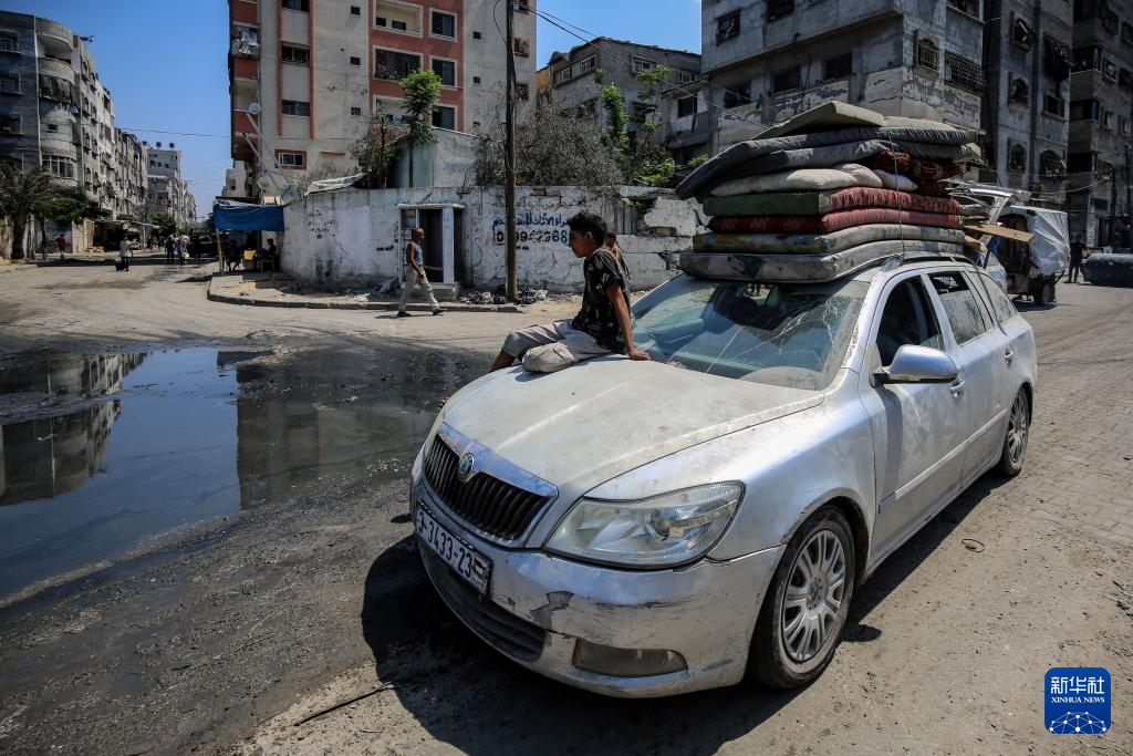 8月22日,巴勒斯坦民众携带物品驾车离开加沙城向南撤离。