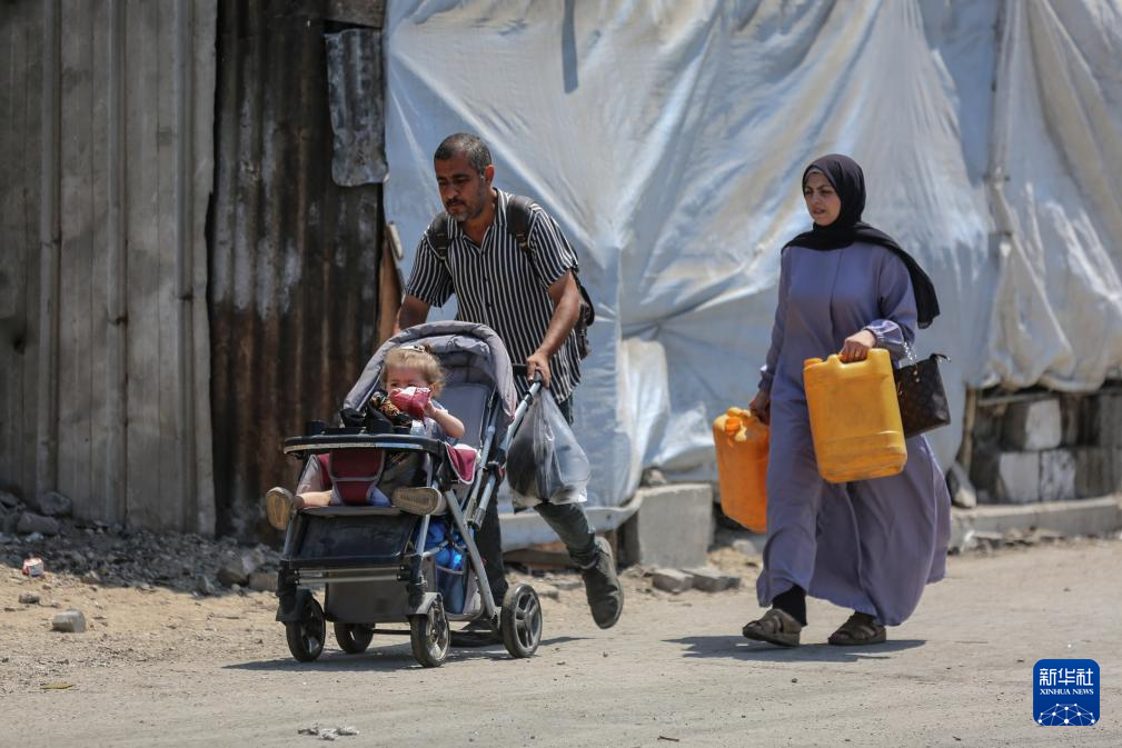 8月22日,巴勒斯坦民众携带物品离开加沙城向南撤离。