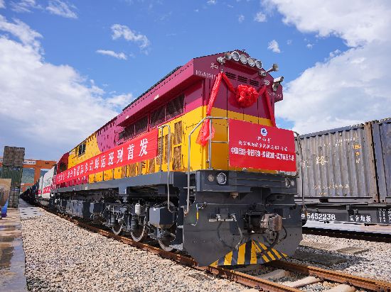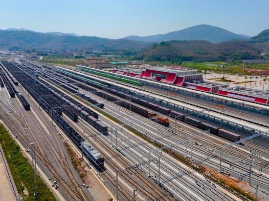 满载新鲜果蔬的中老铁路国际货物列车从王家营西站启程。陈畅摄