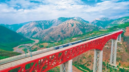 列车飞驰在中老铁路上。国铁昆明局 供图