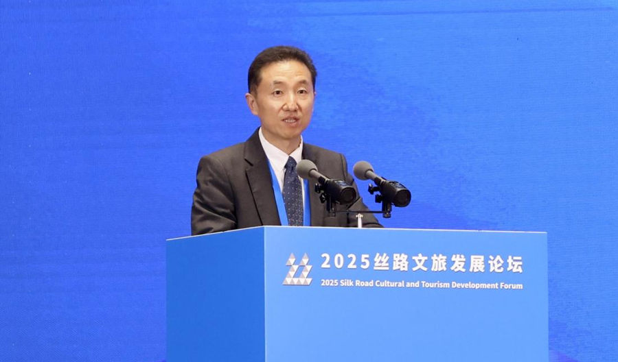 清华大学新闻与传播学院教授、文化创意发展研究院院长胡钰在2025丝路文旅发展论坛上作主旨发言。蒋雨师摄