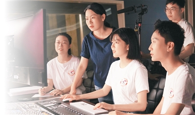 “光明影院”项目师生志愿者正在进行无障碍电影制作实践。 |