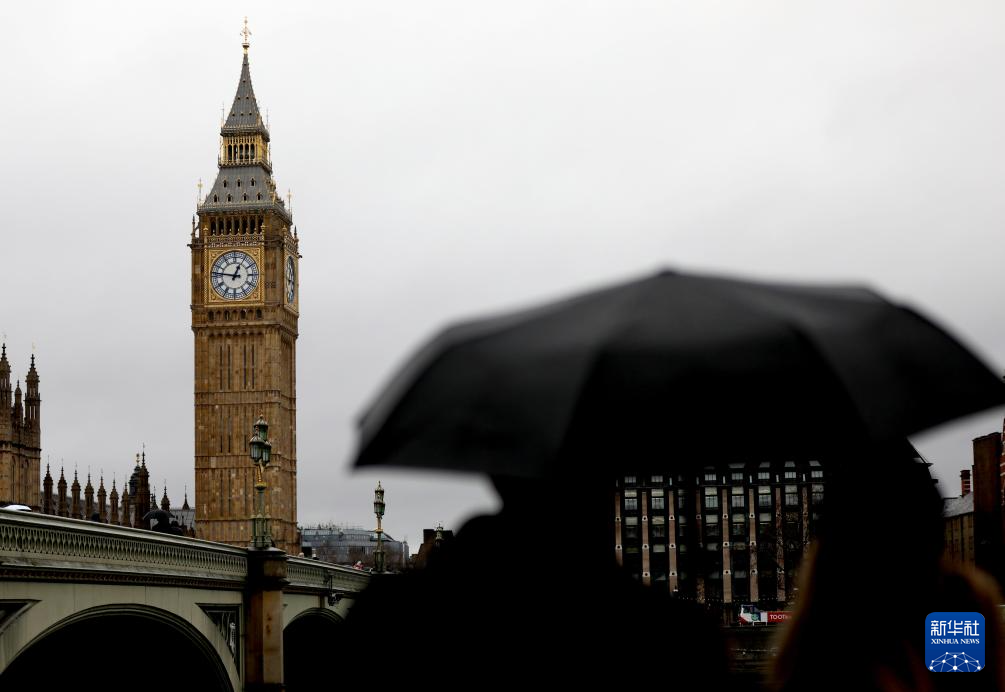 1月27日,人们撑伞行走在英国伦敦大本钟附近。