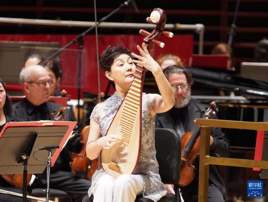 1月28日,在美国费城,中国民乐演奏家于红梅在2026“欢乐春节”音乐会上演出。新华社记者 张凤国 摄