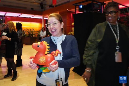 1月28日,在美国费城,一名女子在“你好!中国”旅游推介系列活动上展示吉祥物幸运马。新华社记者 张凤国 摄