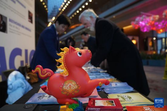 1月28日,在美国费城,吉祥物幸运马摆放在“你好!中国”旅游推介系列活动签到处。新华社记者 张凤国 摄