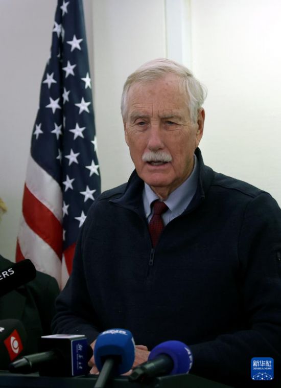 2月9日,在丹麦自治领地格陵兰岛首府努克,美国缅因州独立参议员安格斯·金出席新闻发布会。新华社记者 李颖 摄
