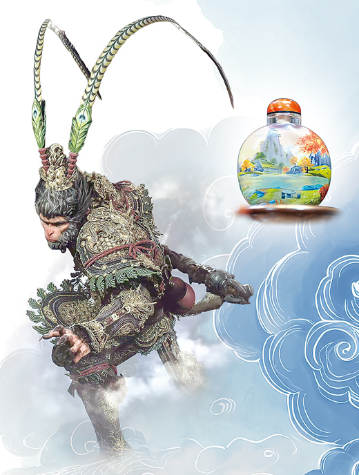 右图:网游《原神》联名纪录片《流光拾遗之旅》中,以内画技艺装饰的工艺品 |